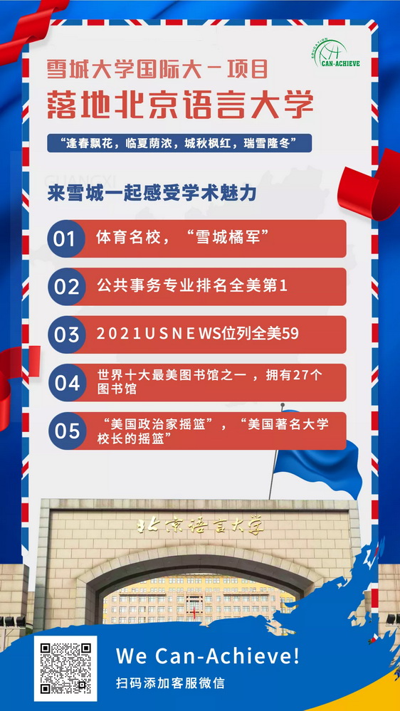 1.北京語言大學(xué)是中國教育部直屬高等學(xué)校,是在周恩來總理的親自關(guān)懷下建立的;是中國唯一一所以對(duì)來華留學(xué)生進(jìn)行漢語、中華文化教育為主要任務(wù)的國際型大學(xué),素有“小聯(lián)合國”之稱,為學(xué)生們提供了很好的語言學(xué)習(xí)環(huán)境。