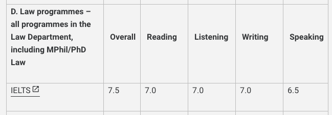 部分專業(yè)的phD要求更高,比如法律專業(yè)一般在7.5。