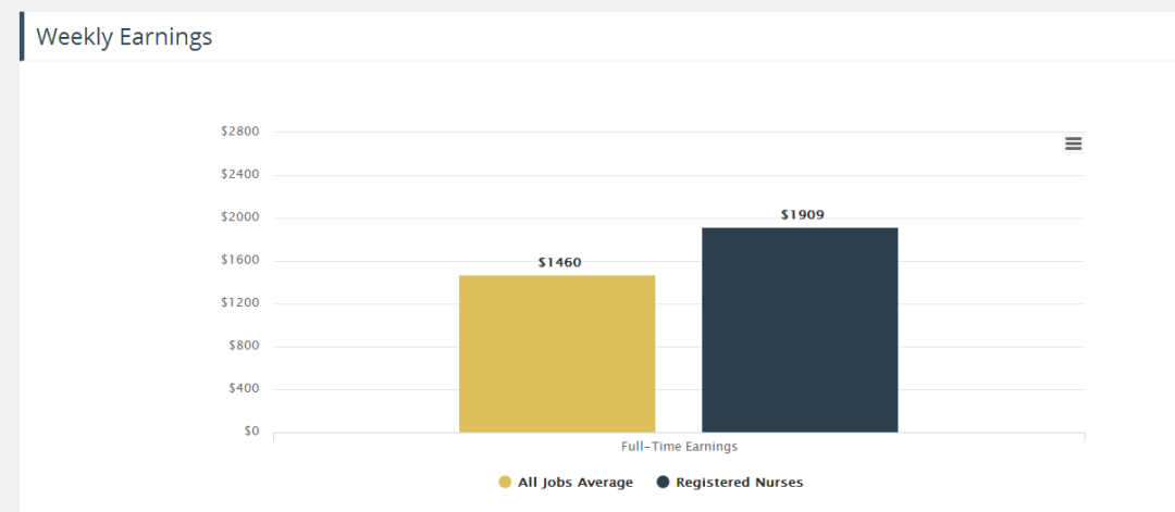 注冊護士的平均周薪為1909澳幣(所有行業(yè)平均:1460澳幣)。