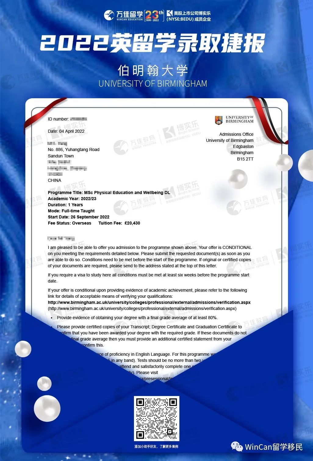 ③體育管理專業(yè)相對(duì)友好,本身學(xué)生本科是985背景,即便沒(méi)有達(dá)到英國(guó)名校要求,也有望沖擊成功;