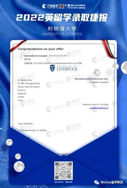 在學(xué)生錄取的院校中不乏有羅素聯(lián)盟,QS前150的優(yōu)秀學(xué)校,也正是因?yàn)閷W(xué)生良好地配合我們才會(huì)有如此低分高開(kāi)的錄??!天高任鳥(niǎo)飛,希望學(xué)生的未來(lái)發(fā)展前景更加廣闊!