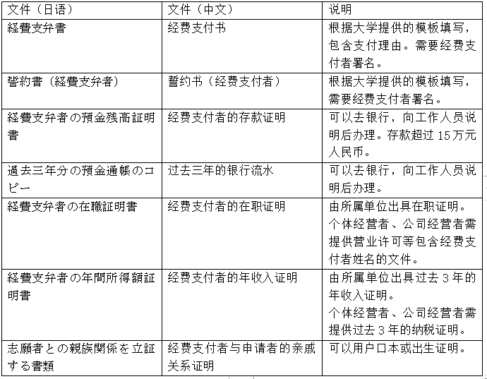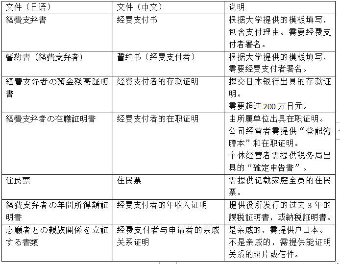 二、滯在費?授業(yè)料等の経費支弁に関する書類(生活費、學費等經費支付相關的文件)