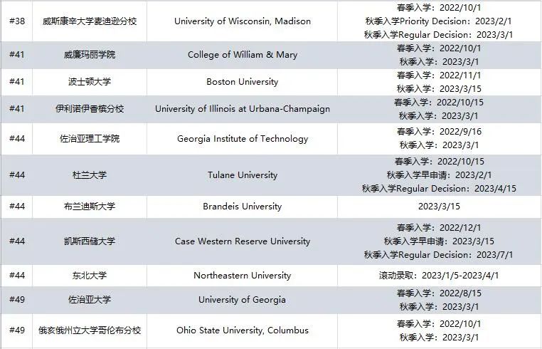 美本TOP50轉(zhuǎn)學(xué)申請(qǐng)截止日期