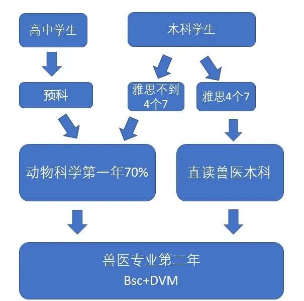 2) 本圖中列出的只是申請方式,不代表最終錄取條件。獸醫(yī)專業(yè)的錄取是擇優(yōu)錄取制,所以本圖中所列僅是最低條件。實際錄取時,會綜合學術(shù)成績,個人陳述,以及相關(guān)工作經(jīng)驗來綜合打分錄取,擇優(yōu)錄取。達到圖中所示條件,方可嘗試申請,但不代表最終被獸醫(yī)專業(yè)錄取。