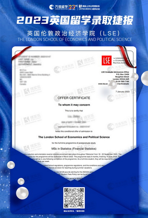 能夠拿到LSE的錄取我是非常滿意的、也是我的夢校,我希望有更多的學子了解萬佳留學,選擇萬佳就是選擇放心。