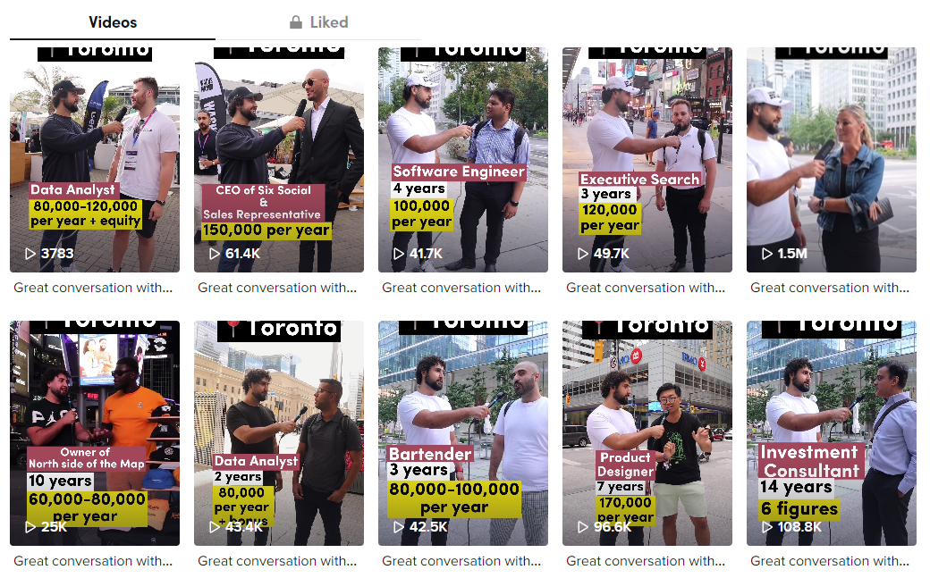 TikToker@canadianincome是一位來自多倫多的博主,他通過簡(jiǎn)單的視頻告訴了大家一些和工作相關(guān)的問題,在一個(gè)月內(nèi)獲得了數(shù)千名粉絲。