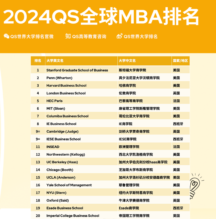 研究生留學2024QS全球全日制MBA&商科碩士排名哪些大學上榜了