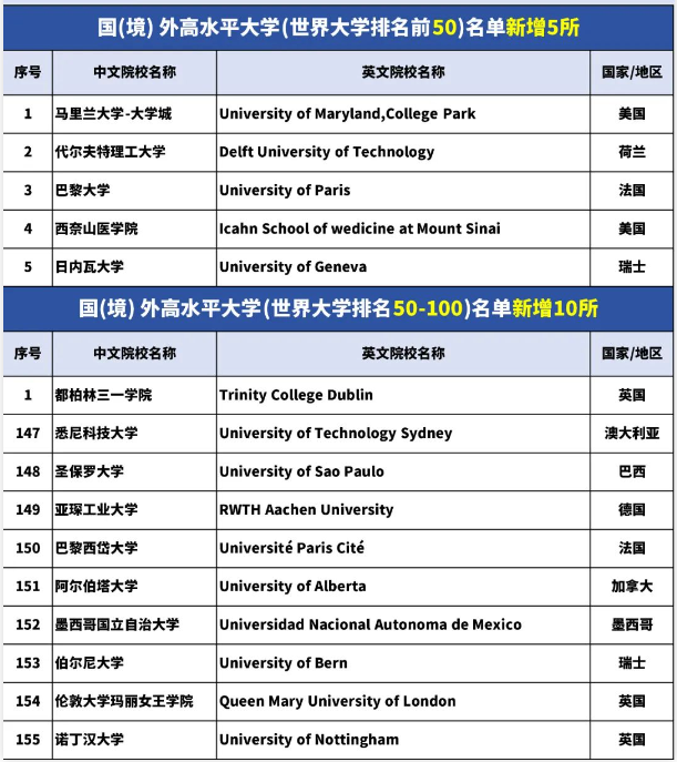 此次公布的名單除了保留2023年公布的大學(xué)名單之外,另外新增了15所大學(xué):