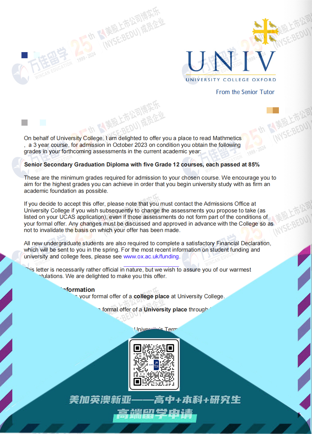 萬(wàn)佳留學(xué)成功案例-英國(guó)牛津大學(xué)錄取
