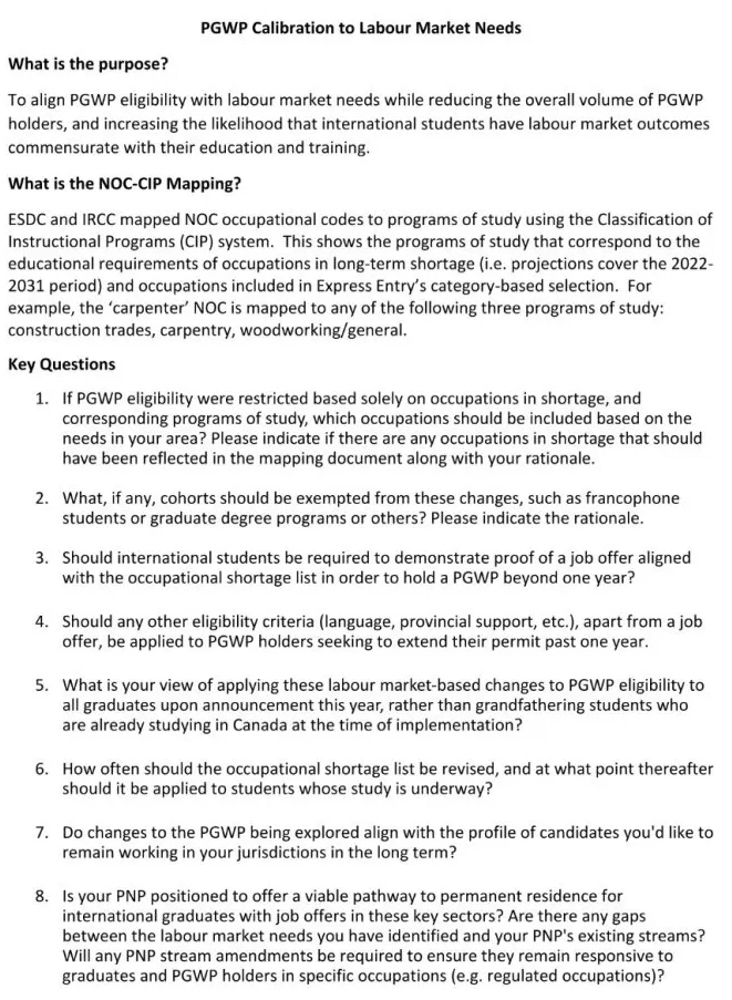 移民局正在考慮進一步規(guī)范PGWP,還向高校機構(gòu)發(fā)布了一份調(diào)查,討論了8點關(guān)于改革PGWP的重要標準,內(nèi)容如下: