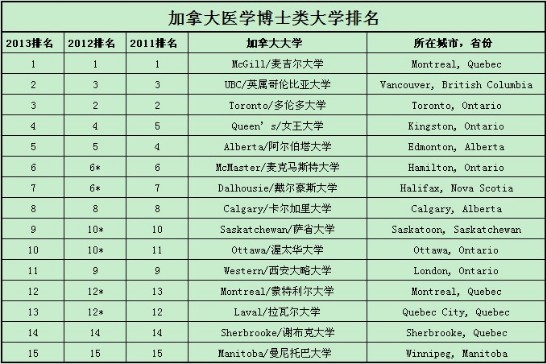 2013年11月1日《麥考林》雜志發(fā)布了最新一次的加拿大大學(xué)排名。由于加拿大政府機(jī)構(gòu)不對大學(xué)進(jìn)行官方排名,因此該排名已成為加拿大本土學(xué)生及國際學(xué)生了解加拿大大學(xué)的一份重要指南。