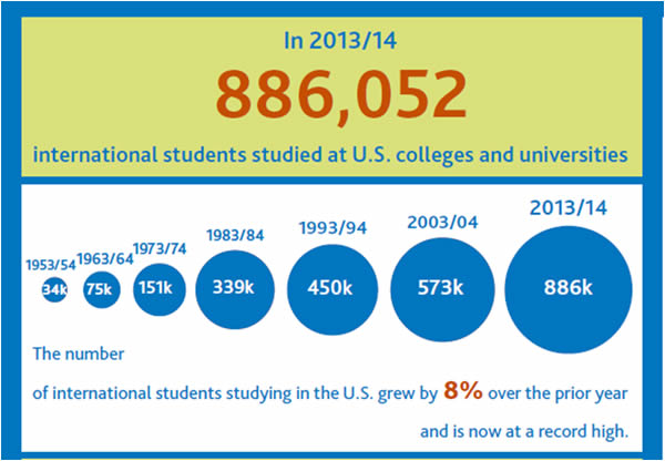 年度8%的增長(zhǎng), 全美留學(xué)生人數(shù)為886,052