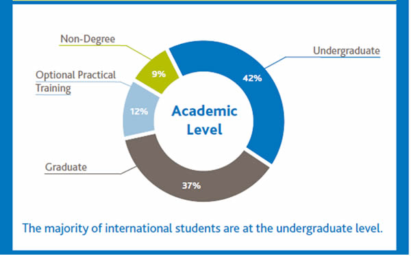 國(guó)際學(xué)生本科學(xué)習(xí)人數(shù)42%, 研究生37%