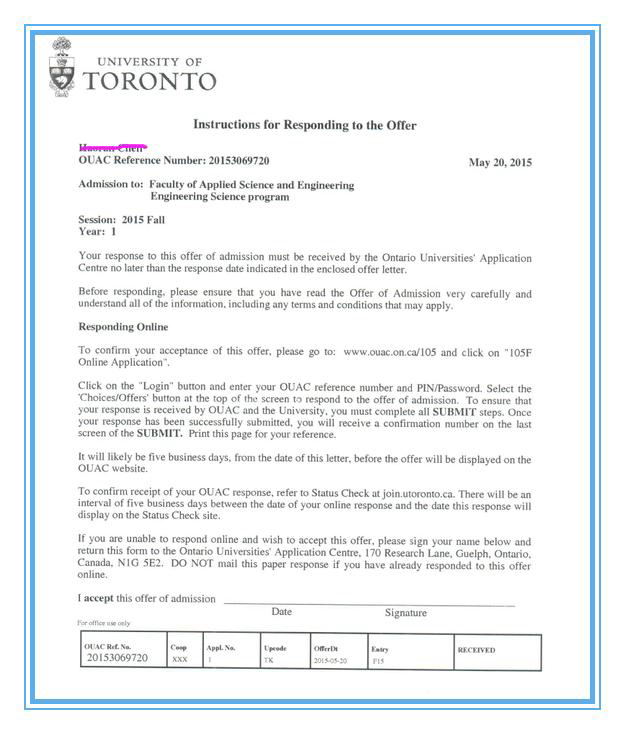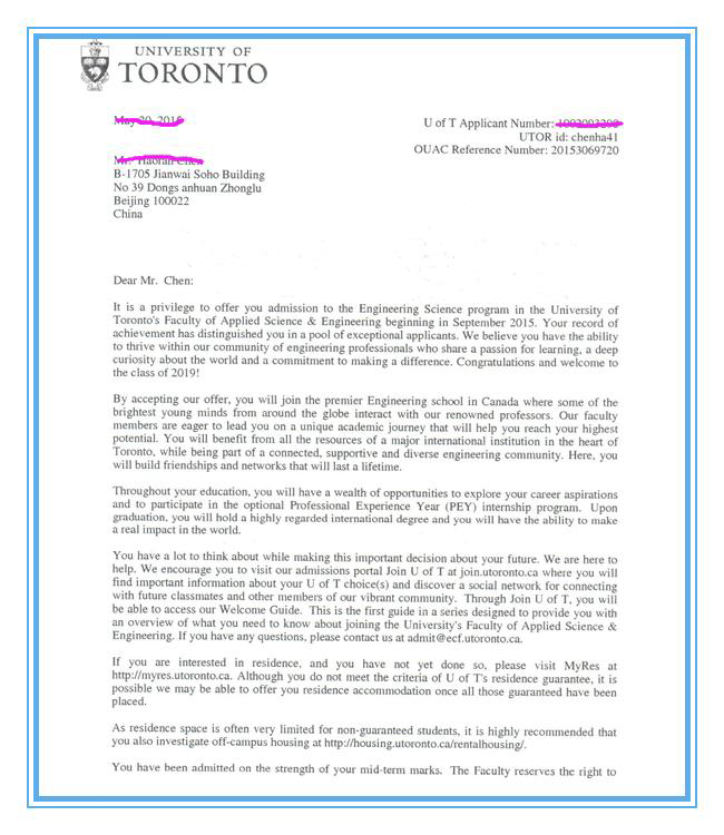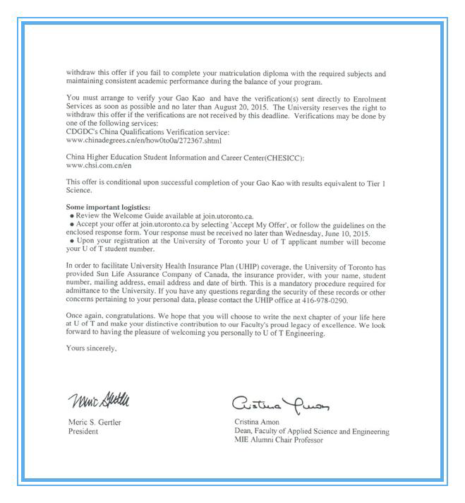入讀學校及專業(yè):多倫多大學工程科學 本科